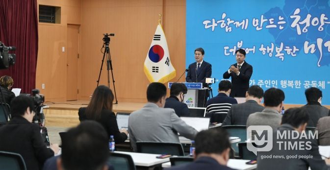 미담타임스 정인화 기자 | 청양군은 6일 군청 대회의실에서 기자회견을 열고 정부의 농어촌 기본소득 시범사업 선정 이후의 추진 방향과 재정운용 계획을 구체적으로 발표했다.