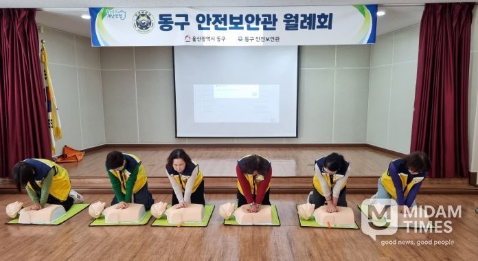 미담타임스 김준완 기자 | 울산 동구는 동구 안전보안관(대표 고이곤)과 함께 11월 6일 오전 10시 전하2동 행정복지센터 회의실에서 동구생활안전체험센터의 ‘찾아가는 심폐소생술 교육’을 체험하고 동울산종합시장 일원에서 동절기 대비 화재예방 캠페인을 실시했다.