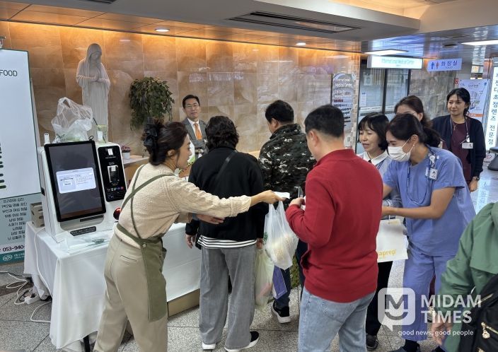 이번 행사는 대구파티마병원 대외협력실장의 고향이 군위군이라는 인연으로 성사된 자리로, 군위를 대표하는 황금배, 샤인머스캣, 대추 가공품 등 7종의 농특산물이 판매돼 방문객들로부터 큰 호응을 얻었다.