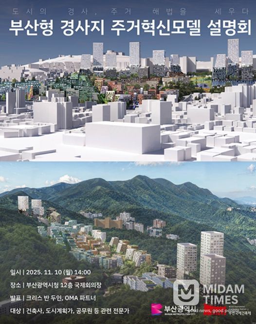 시는 이번 설명회를 통해 건축·도시 전문가와 함께 '경사지라는 도시의 제약을 혁신의 기회로 바꾸는 부산형 주거모델' 비전을 제시하고, 향후 도시정비사업과 주거정책 전반에 새로운 방향성을 수립해 나갈 계획이다.
