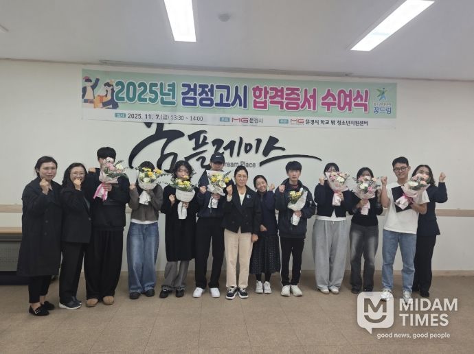 미담타임스 김준완 기자 | 문경시 학교 밖 청소년지원센터『꿈드림』은 지난 7일 검정고시에 합격해 졸업 학력을 취득한 청소년들에게 경상북도교육청의 합격 증서를 수여하는 ‘2025년 검정고시 합격증서 수여식’을 가졌다.