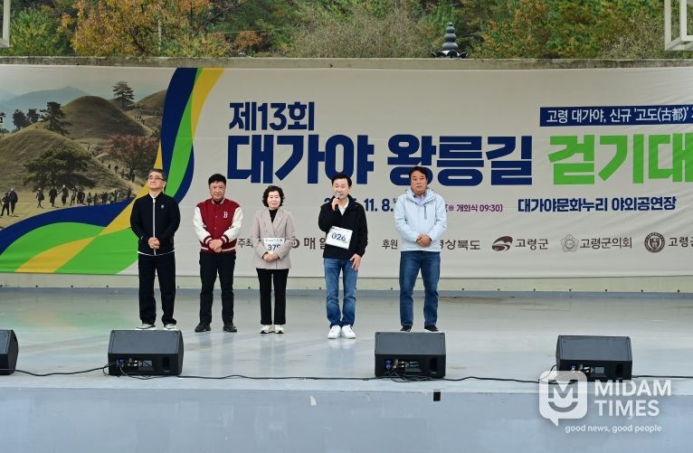 미담타임스 김준완 기자 | 고령군은 11월 8일 오전 9시, 대가야문화누리 야외공연장에서 열린 제13회 대가야왕릉길 걷기대회를 성황리에 마무리했다고 밝혔다. 이번 행사는 대가야, 신규 ‘고도(古都) 지정을 기념하여 개최됐으며 찬란한 역사이자 세계유산에 빛나는 고령 지산동 고분군을 배경으로, 군민과 방문객 등 약 1,000여명이 함께 소통하고 화합하며 가을의 정취를 만끽하는 특별한 시간을 가졌다.