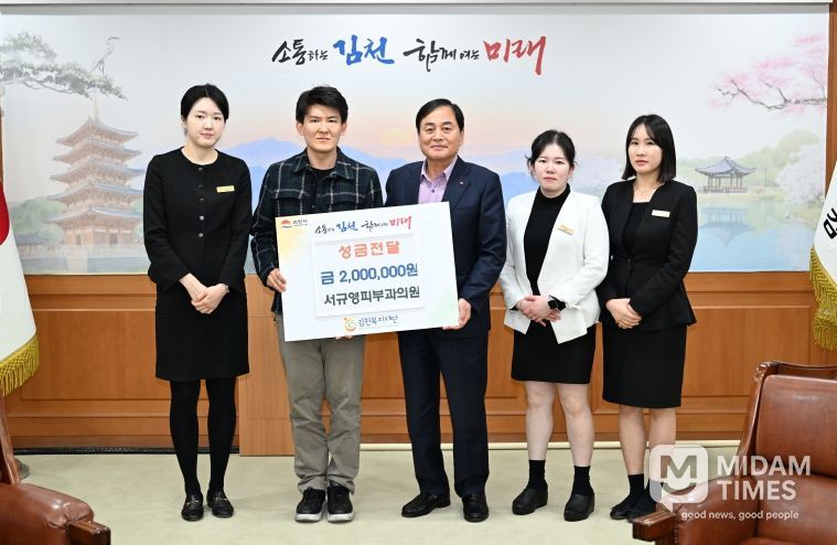 미담타임스 김준완 기자 | 김천복지재단(이사장 배낙호)은 지난 7일, 서규영피부과의원(원장 서규영·정인재)으로부터 성금 200만 원을 전달받았다고 밝혔다.