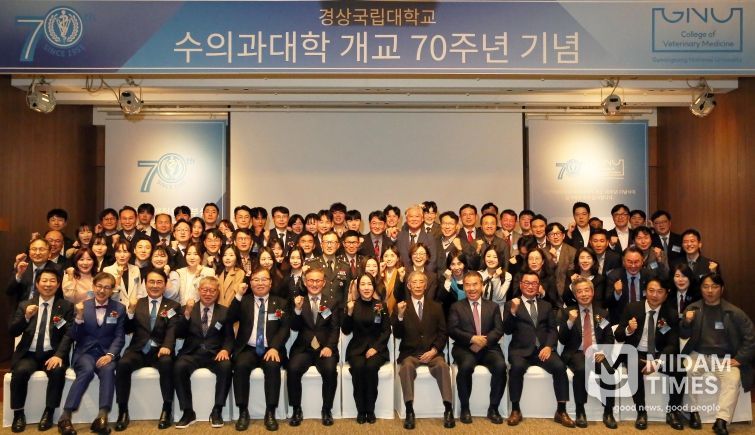 미담타임스 김교환 기자 | 경상국립대학교 재경 수의과대학 동문회(회장 하지영)는 11월 6일 저녁 서울신라호텔 영빈관에서 ‘70년 개척의 자부심, 100년을 향한 새로운 비상’이라는 슬로건으로 ‘수의과대학 개교 70주년 기념행사’를 개최했다.