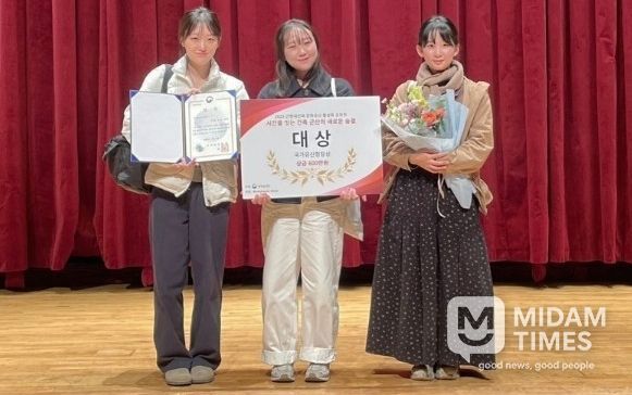 미담타임스 김교환 기자 | 경상국립대학교 공과대학 건축학과 이선희(4학년), 김조은(5학년), 박혜림(4학년) 학생이 국가유산청에서 주최한 ‘2025 근현대건축 문화유산 활성화 공모전’에서 대상(국가유산청장상)을 수상했다.