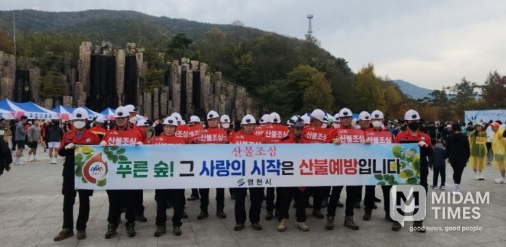 미담타임스 김준완 기자 | 영천시는 가을철 산불조심기간을 맞아 지난 8일 영천댐공원에서 산불예방 홍보를 위한 캠페인을 펼쳤다.
