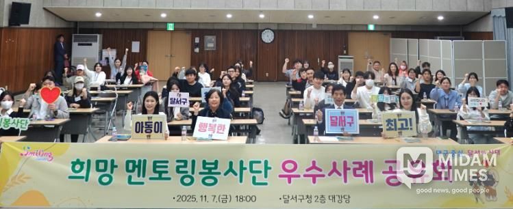 미담타임스 김교환 기자 | 대구 달서구는 지난 7일 구청에서 멘토링봉사단 멘토와 멘티를 초청해 '희망 멘토링봉사단 우수사례 공유회'를 개최했다.