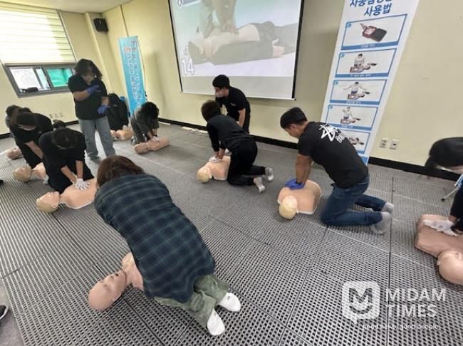 참가자들은 실제 상황을 가정한 심폐소생술 실습을 통해 응급상황 발생 시 신속하고 정확하게 대처할 수 있는 능력을 향상시켰으며, 오전 16명, 오후 27명 등 총 43명이 참여했다.