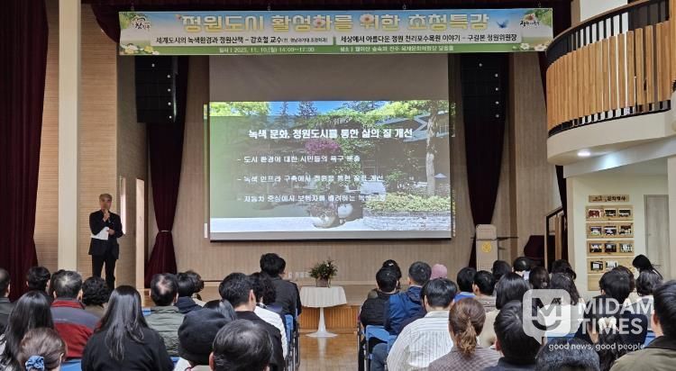 이날 강연에서는 강호철 전 경남과학기술대 조경학과 교수가 ‘세계도시의 녹색환경과 정원산책’을 주제로 세계 여러 도시의 정원조성과 운영사례, 시민참여 중심의 정원문화 확산방안을 소개했다.