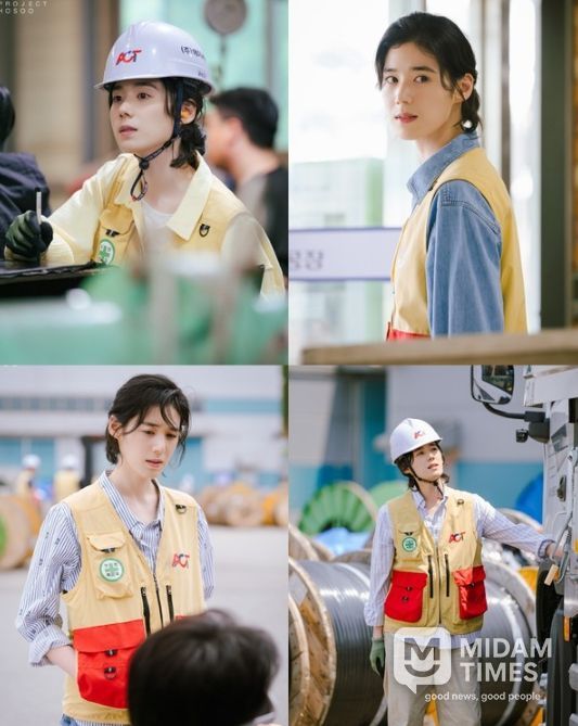 정은채는 공장의 점심시간을 알리는 신호와 함께 강렬히 등장했다. 호탕한 발성으로 “밥 먹자!”를 외치며 백여 명의 직원을 이끄는 장면은 단숨에 분위기를 장악, 극에 활기를 불어넣었다.