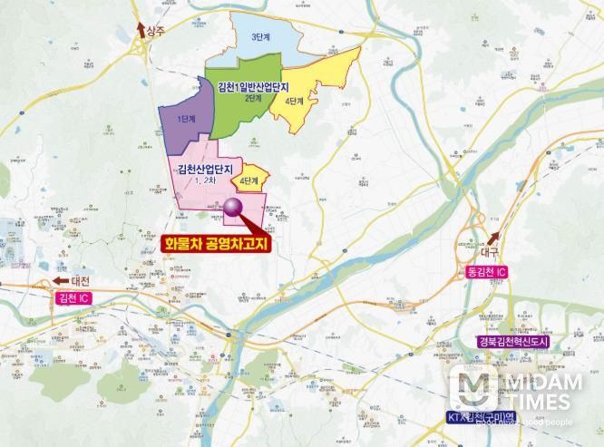 대상부지는 김천산업단지 내(대광동 1343 일원)에 위치하며, 총면적 35,000㎡로 266대의 주차면과 관리동 등이 설치된다.