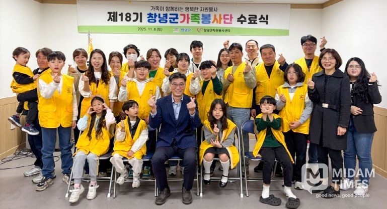 미담타임스 김교환 기자 | 창녕군은 지난 8일 창녕군자원봉사센터 교육장에서 ‘제18기 창녕군가족봉사단 수료식’을 개최했다고 밝혔다. 이번 수료식에는 가족봉사단 14가족 52명 중 총 8회 활동 중 5회 이상 참여한 13가족 48명이 수료했다.