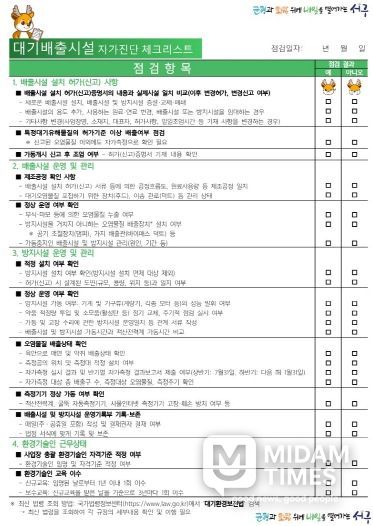 미담타임스 김준완 기자 | 인천 서구는 관내 환경오염물질 배출사업장의 자율적인 환경관리 역량을 강화하고, 환경오염 사고를 예방하기 위해 '자가진단 체크리스트'를 배부한다고 밝혔다.
