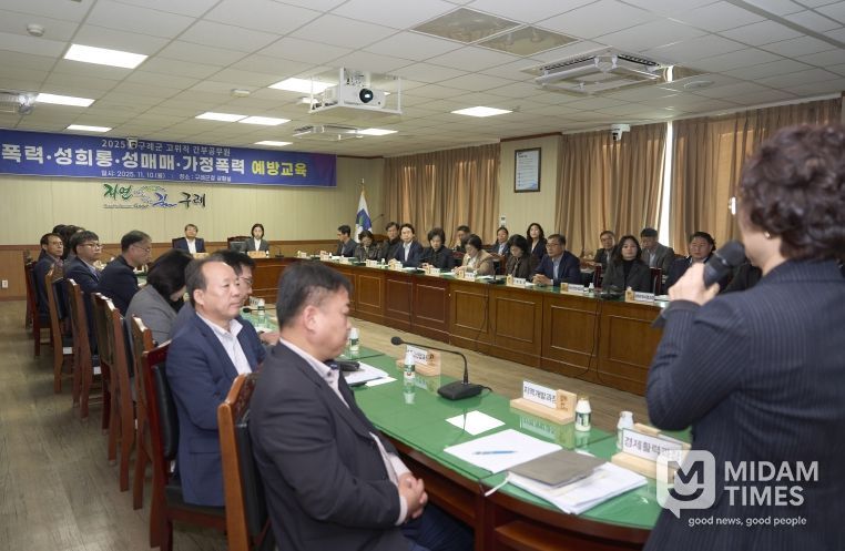 미담타임스 정인화 기자 | 전남 구례군은 지난 10일 김순호 군수를 비롯한 5급 이상 간부공무원 33명을 대상으로 4대폭력(성폭력, 성희롱, 성매매, 가정폭력) 예방교육을 실시했다.
