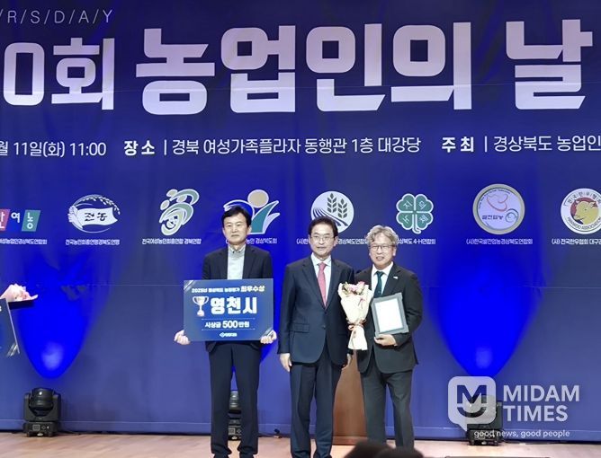 미담타임스 김준완 기자 | 영천시는 11일 경북여성플라자 동행관에서 열린 제30회 경상북도 농업인의 날 기념행사에서 2025년 경북 시‧군 농정평가 ‘최우수상’을 수상하는 영예를 안았다.