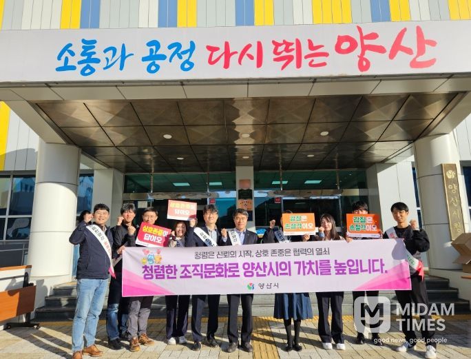 미담타임스 김교환 기자 | 양산시는 11일을 ‘상호존중의 날’로 지정하고, 양산시청과 비즈니스센터에서 직원 상호존중 캠페인을 전개했다.