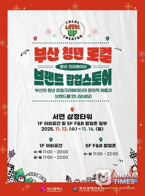 미담타임스 김교환 기자 | 부산시와 부산경제진흥원은 오늘(12일)부터 16일까지 5일간 서면 삼정타워에서 '2025 부산 청년 로컬 브랜드 팝업스토어'를 개최한다고 밝혔다.