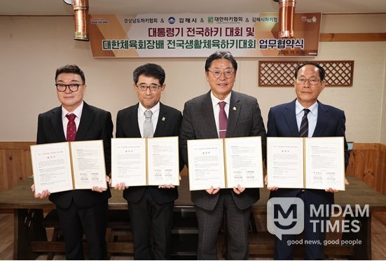 미담타임스 김교환 기자 | 김해시가 대한하키협회, 경남하키협회, 김해하키협회와 손잡고 향후 3년간 대통령기 전국하키대회와 대한체육회장배 전국생활체육하키대회를 개최한다.