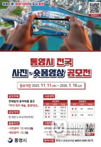 미담타임스 김교환 기자 | 통영시는 새로운 관광 명소 홍보와 국민 참여형 콘텐츠 제작을 위해 ‘통영시 전국 사진·숏폼영상 공모전’접수를 시작했다고 12일 밝혔다.