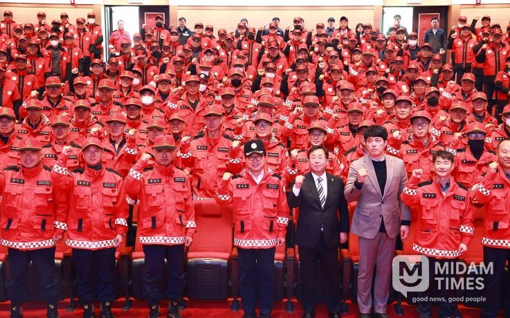미담타임스 김준완 기자 | 울진군은 지난 11월 11일 25년 가을철부터 26년 봄철까지 이어지는 산불조심기간을 맞아, 산불전문예방진화대와 산불감시원 등 200여 명이 참석한 가운데 왕피천공원문화관에서 산불예방 및 방지를 위한 발대식을 개최했다.