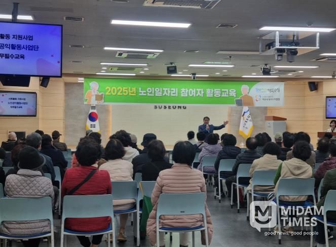 미담타임스 김교환 기자 | 대구 수성구는 지난 11일 ‘대구수성시니어클럽 노인공익활동사업’ 추가 참여 어르신들을 대상으로 활동 교육을 실시했다고 밝혔다.