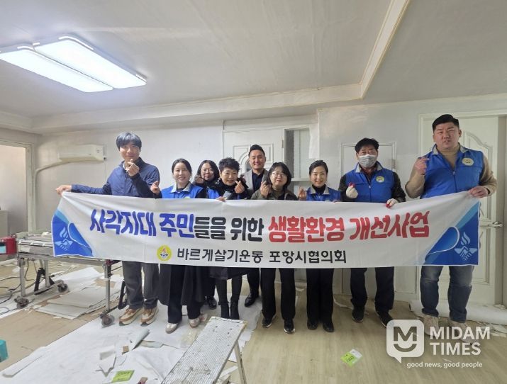 미담타임스 김준완 기자 | 포항시는 바르게살기운동포항시협의회가 지난 10일부터 11일까지 양일간 지역 내 주거 취약계층을 대상으로 ‘사각지대 생활환경 개선사업’을 추진하며 어려운 이웃을 위한 따뜻한 나눔을 실천했다고 밝혔다.