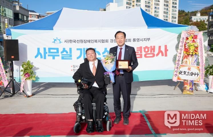 미담타임스 김교환 기자 | (사)한국선원장애인복지협회 경상남도협회 통영시지부는 지난 11일 선원 출신 장애인 및 가족, 관내 유관 단체장 등 80여 명이 참석한 가운데 동호동 물량장에서 사무실 이전 개소식을 개최했다.