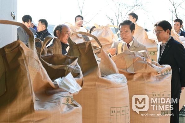 미담타임스 김교환 기자 | 거창군은 지난 12일 거창그린에서 ‘2025년산 공공비축 건조벼’를 첫 매입했다.