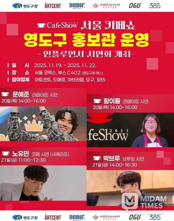 미담타임스 김교환 기자 | 부산시 영도구는 오는 11월 19부터 22일까지 서울 코엑스에서 열리는 ‘2025 서울카페쇼’에 참가해 영도구 홍보관(공동관)을 운영한다고 밝혔다.