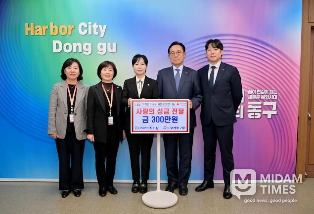 미담타임스 김교환 기자 | (주)시티캅은 지난 11일 부산 동구에 사랑의 성금 300만원을 기탁했다.