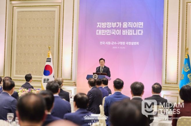 미담타임스 김교환 기자 | 이재명 대통령은 오늘 오후 청와대 영빈관에서 시장·군수·구청장 국정설명회를 주재했다. 오늘 자리에는 161명의 기초지방정부 단체장들이 함께해 정부의 국정운영 방향과 자치분권, 균형 성장 방안 등에 대한 의견을 나눴다.