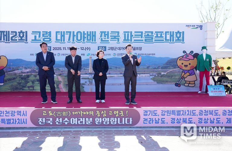 미담타임스 김준완 기자 | 고령군은 지난 10월 13일부터 대가야파크골프장에서 시작된 제2회 고령 대가야배 전국파크골프대회가 성황리에 마무리됐다고 밝혔다. 이번 대회는 고령군체육회(회장 김종태)가 주최하고 고령군 파크골프협회(협회장 김광식)가 주관했으며, 전국 각지에서 2,000여 명의 파크골프 동호인들이 참가하여 5주간 열띤 경쟁을 펼쳤다.