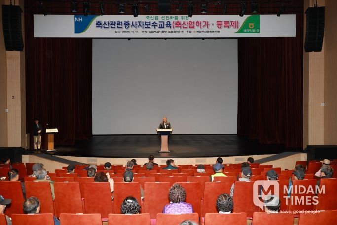 미담타임스 김준완 기자 | 예천군에서는 13일 오전 9시, 예천군문화회관에서 김학동 군수, 도기욱 도의원, 강영구 군의회의장을 비롯한 내빈과 축산업 허가 및 등록자 100여 명이 참석한 가운데 ‘2025년 축산관련 종사자 보수교육’을 실시했다.