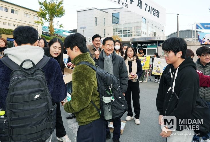 미담타임스 김준완 기자 | 영천시는 2026학년도 대학수학능력시험일인 13일 오전 7시부터 관내 시험장인 영동고등학교와 선화여자고등학교를 찾아 지역 수험생들을 응원하고 격려했다.
