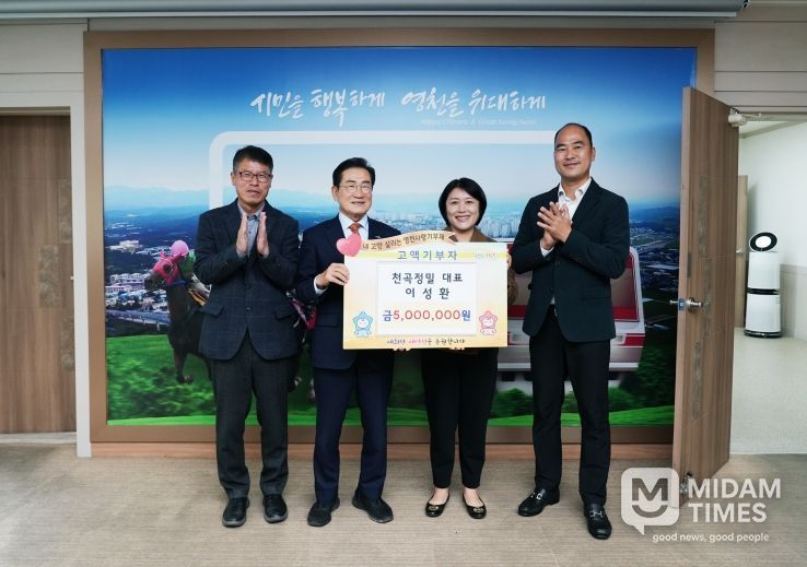 최기문 시장은 “매년 변함없이 고향사랑기부금을 통해 영천을 응원해주시는 이성환 대표께 깊이 감사드린다”며, “소중한 기부금은 지역 복리 증진 등 시민이 체감할 수 있는 분야에 소중히 사용하겠다”고 말했다.