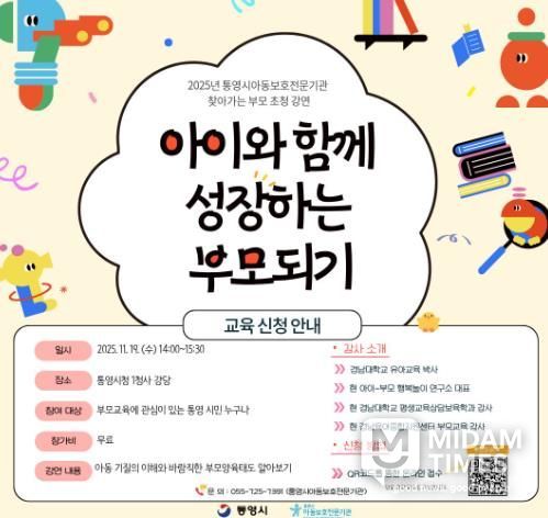 참석 대상은 통영시에 거주하는 자녀를 둔 부모와 예비 부모이며 참여는 무료다.