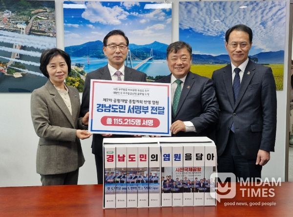 미담타임스 김교환 기자 | 경남도는 사천공항 확장과 국제선 취항 등을 염원하는 도민 11만 5,215명의 서명부를 국회(서천호 국회의원), 국토교통부, 한국교통연구원에 전달했다고 13일 밝혔다.