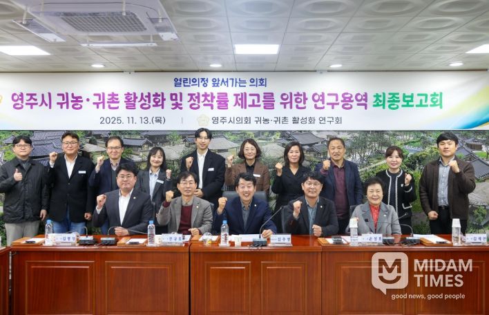미담타임스 김준완 기자 | 영주시의회 의원연구단체인 '귀농·귀촌 활성화 연구회'는 13일 영주시의회 소회의실에서 '귀농·귀촌 활성화 및 정착률 제고 방안 연구용역' 최종보고회를 열고, 영주시 귀농·귀촌 정책의 현황과 향후 발전 방향을 논의했다.