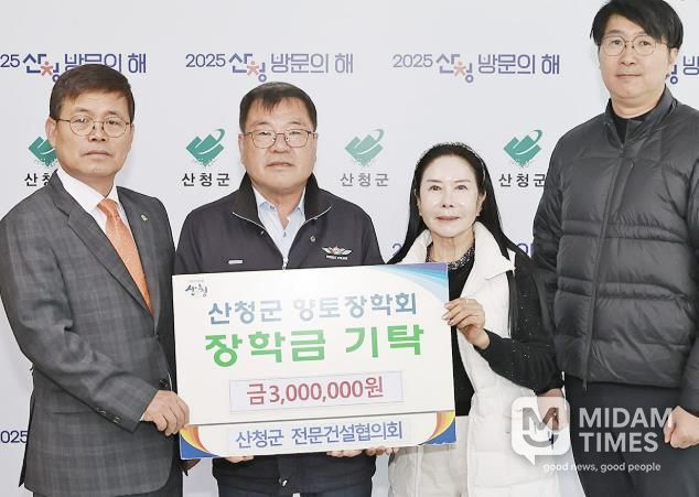 미담타임스 김교환 기자 | 산청군은 산청군 전문건설협의회가 향토장학금 300만원을 기탁했다고 14일 밝혔다.