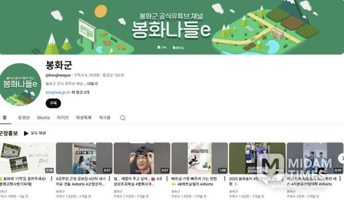 이 같은 노력 덕분에 봉화군 유튜브 채널의 구독자 수는 1년 새 1천 명 이상 증가했다.