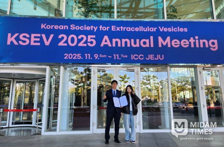 미담타임스 김교환 기자 | 경상국립대학교 생명과학연구원 김민준 선임연구원과 응용생명과학부 석사과정 이세민 씨(지도교수 권혁권)가 ‘Korean Society for Extracellular Vesicles(KSEV) 2025 Annual Meeting’에서 우수포스터 발표자상을 받았다.