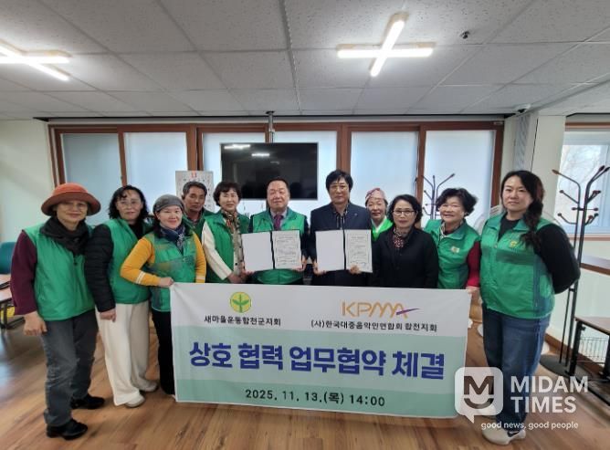 미담타임스 김교환 기자 | 새마을운동합천군지회와 (사)한국대중음악인연합회 합천군지회는 11월 13일 오후 2시 새마을운동합천군지회 사무실에서 지회 회장단과 지도자, 한국대중음악인연합회 합천지회 회장단 20명이 참여한 가운데 ‘상호협력 업무 협약식’을 가졌다.