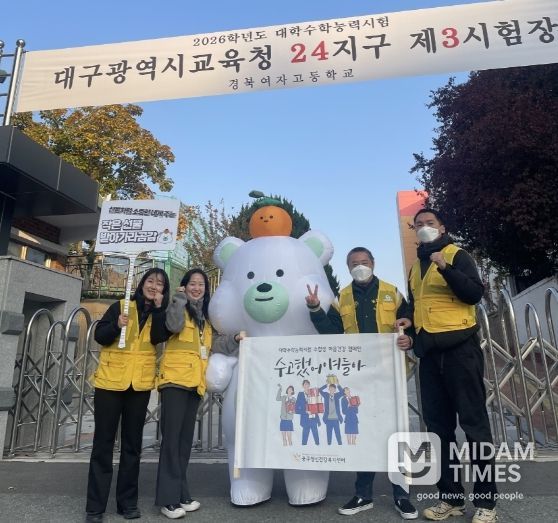 미담타임스 김교환 기자 | 대구 중구보건소(소장 황석선)와 중구정신건강복지센터(센터장 장성만)는 지난 13일 경북여자고등학교 정문에서 대학수학능력시험을 마친 수험생과 보호자를 대상으로 ‘수고했어, 얘들아’ 정신건강증진 캠페인을 했다.
