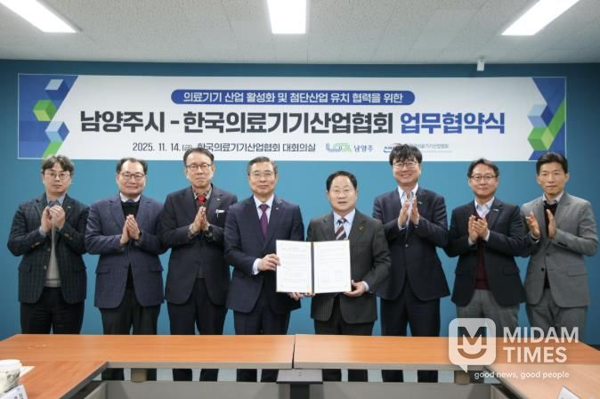 미담타임스 정주환 기자 | 남양주시는 11월 14일 사단법인 한국의료기기산업협회(회장 김영민)에서 왕숙 도시첨단산업단지의 성공적 조성과 의료기기 산업 활성화를 위한 업무협약(MOU)을 체결했다고 밝혔다.