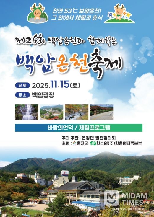 미담타임스 김준완 기자 | 울진군은 11월 15일 울진군 온정면 백암광장 일원에서 ‘제26회 백암온천축제’를 개최한다.