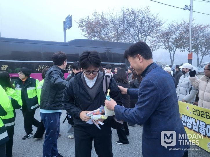 교육장을 포함한 교육지원청 직원 20여 명은 이른 아침에 수험생들을 응원하기 위해 자발적으로 모였으며, 대학수학능력시험 응시자들을 응원하기 위해 모인 지역의 자율방범대원과 학부모 단체와 함께 수험생들을 응원했다.