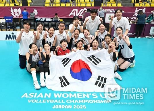 한국 U-16 여자배구대표팀은 11월 1일부터 8일까지 요르단 암만에서 열린 ‘2025 제2회 아시아여자 U-16 배구선수권대회’에서 대만을 세트 스코어 3-2(26-28, 25-21, 25-11, 19-25, 15-13)로 꺾고 우승을 차지했다.