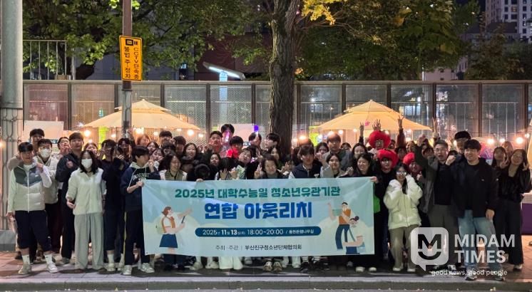 미담타임스 김교환 기자 | 부산진구는 대학수학능력시험일인 11월 13일 18시부터 놀이마루 앞 동천은행나무길 일원에서 청소년 유관기관과 함께 ‘청소년 연합 아웃리치’ 활동을 전개했다.