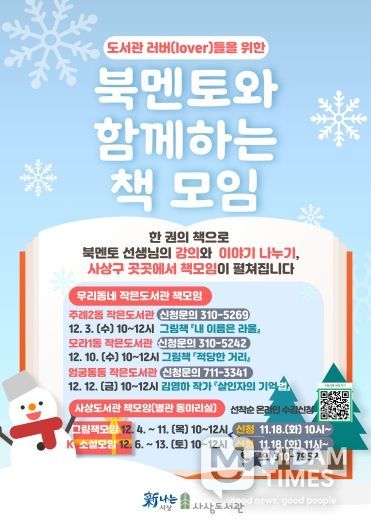사상도서관 관계자는 “사상구 곳곳의 작은도서관이 함께 읽고 생각을 나누는 지역 문화 플랫폼으로 자리 잡길 바란다”며 “북멘토와 함께하는 이번 책모임이 서로를 이해하고 성장하는 소중한 시간이 되기를 기대한다”고 말했다.