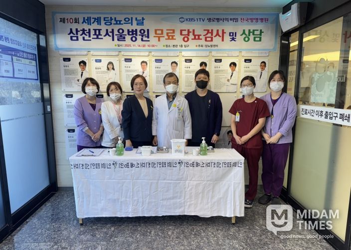 미담타임스 김교환 기자 | 의료법인승연의료재단 삼천포서울병원(병원장 한창섭)은 2025년 11월 14일(금) 제10회 세계 당뇨의 날(World Diabetes Day) 을 맞아 지역주민을 대상으로 무료 혈당 검사 및 당뇨병 관련 건강 상담 행사를 병원 본관 입구에서 실시했다.